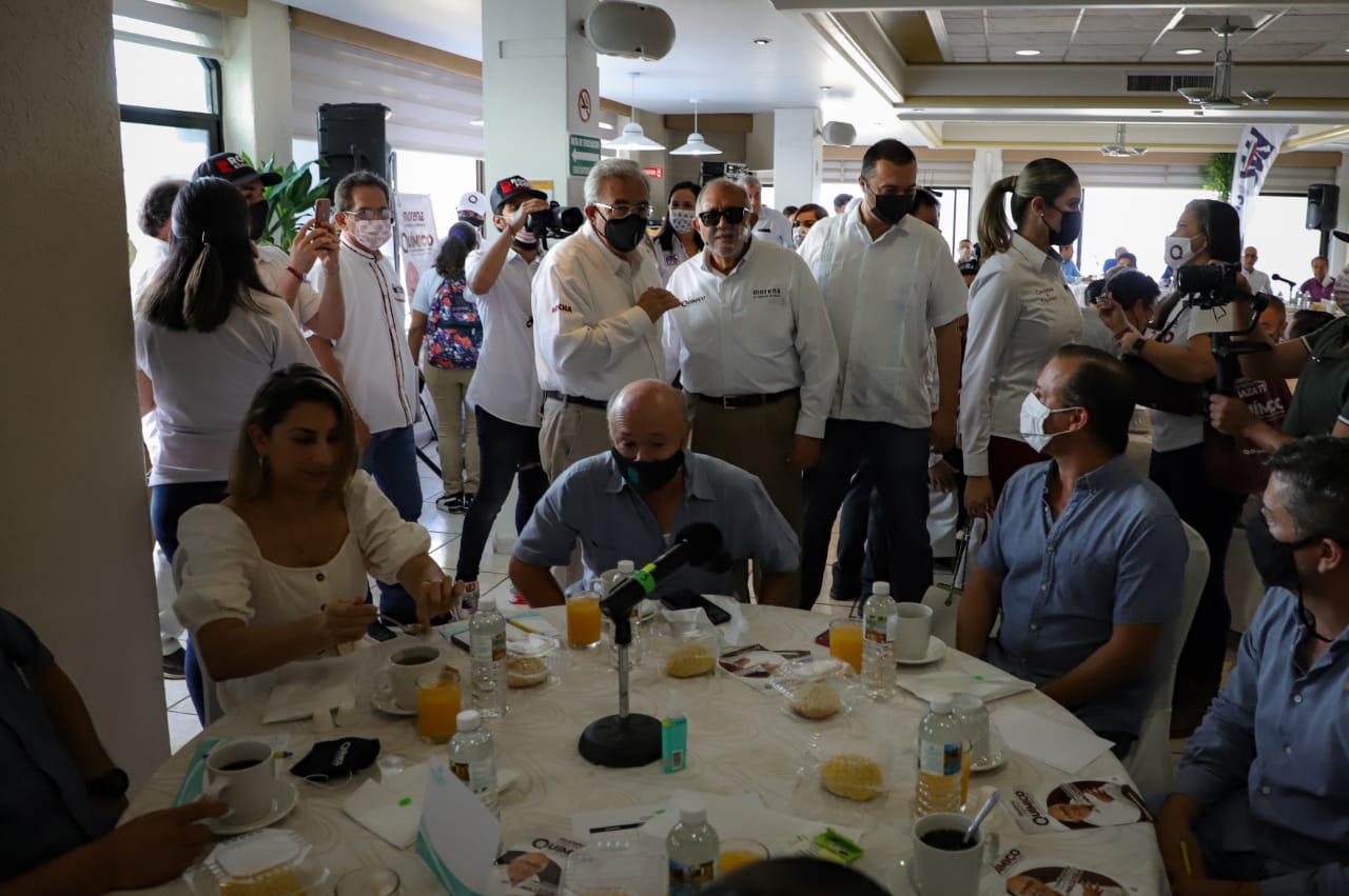 En el encuentro con el sector productivo del puerto estuvieron presentes el presidente de PAS, Héctor Melesio Cuen Ojeda; candidato a la alcaldía, Luis Guillermo Benitez Torres; la candidata a la diputación local por el Distrito 22, Flor Emilia Guerra Mena; y el ex beisbolista, Juan José Pacho.