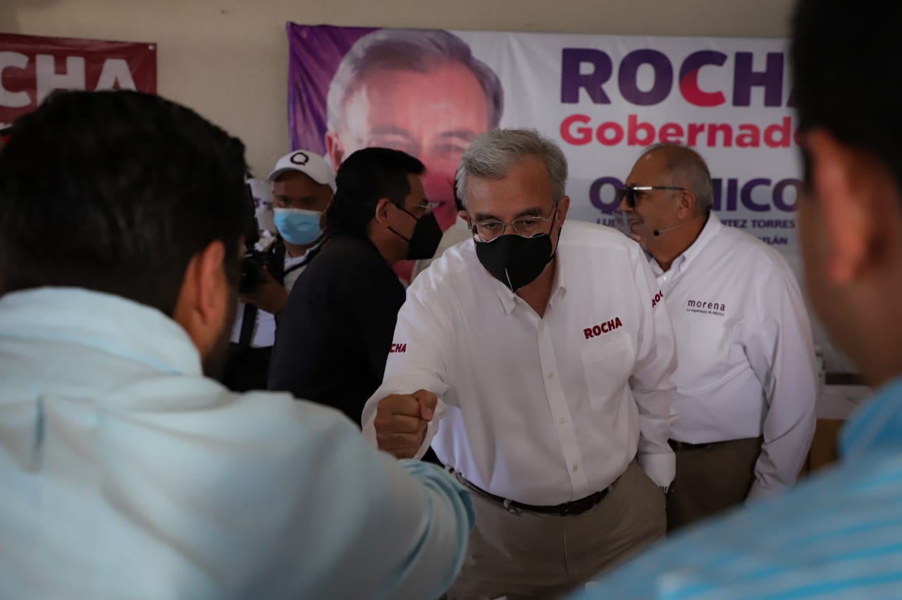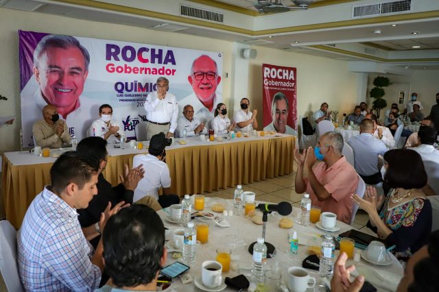 Durante un encuentro con el sector productivo de Mazatlán, el candidato de la alianza Morena-PAS a la gubernatura, Rubén Rocha Moya, afirmó que su gobierno estará fincado en el Estado de Derecho, donde los empresarios tendrán la confianza de que su inversión estará protegida a fin de que generen más empleos para bien de los que menos tienen.