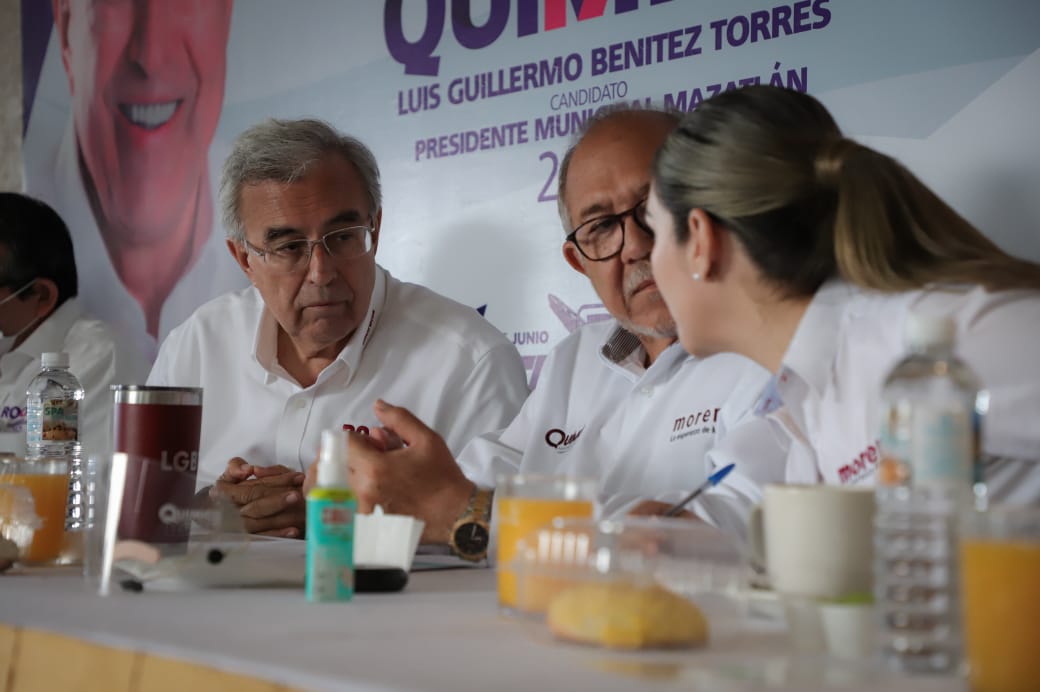 Ante las solicitudes que hicieron los representantes de la Canirac, Coparmex, Canacintra, Codesin, Canadevi, CMIC, Cámara Nacional del Autotransporte de Carga, así como las asociaciones de Hoteles Tres Islas, Mexicana de Profesionales Inmobiliarios, Desarrolladores Inmobiliario, Ejecutivos de Ventas y Mercadotecnia, Clubes Vacacionales en Sinaloa y de Agricultores del Río Presidio, el candidato de los partidos MORENA-PAS dijo que no solo iban a atender sus peticiones, sino que también “los vamos a cuidar, nos interesa que se desarrolle Sinaloa, sus ciudades, que haya recursos para poder atender las necesidades vitales de mucha gente”.