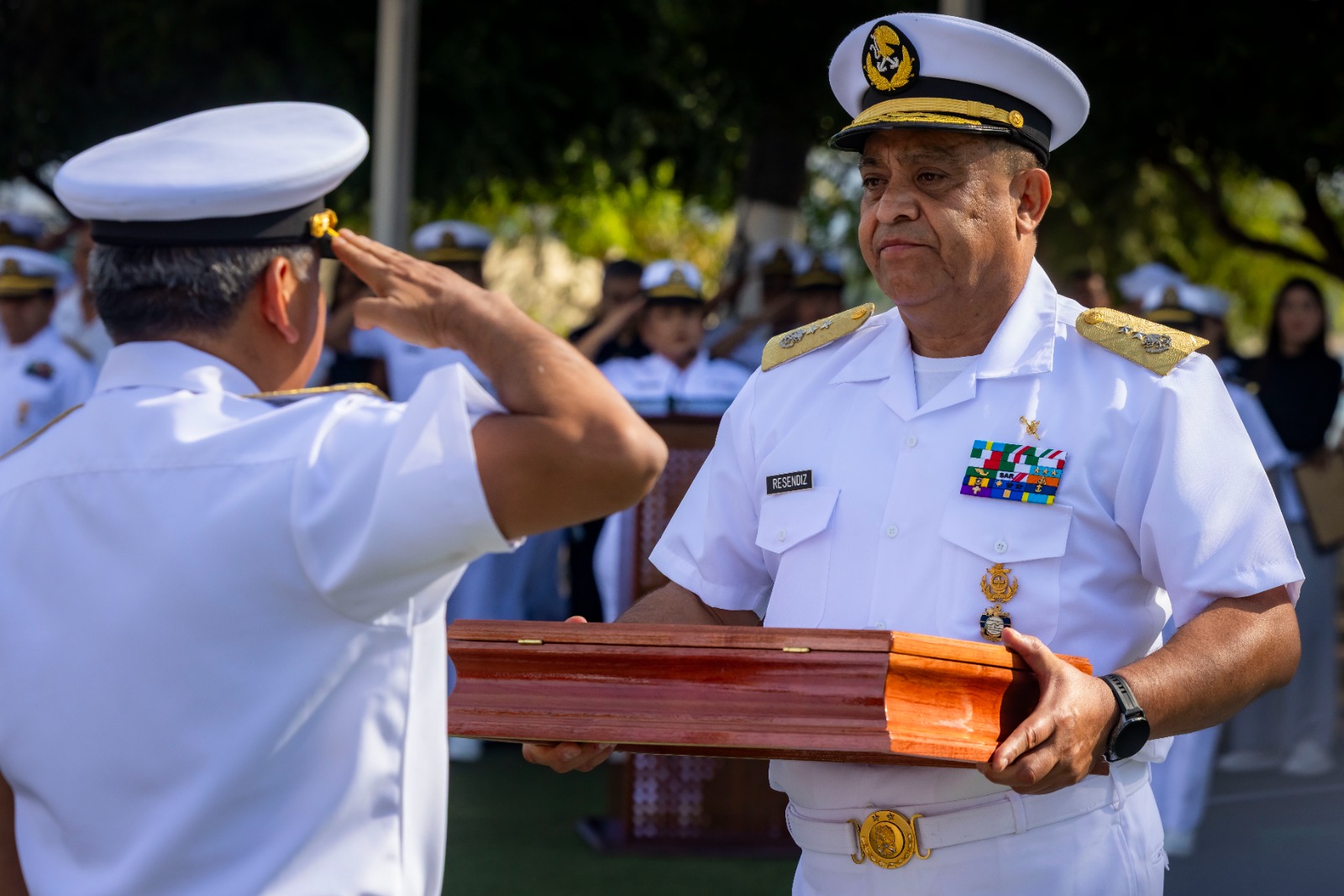 La ceremonia, realizada en las instalaciones de la Cuarta Región Naval, contó con la presencia del contralmirante Mariel Aquileo Ancona, director general de la administración del Sistema Portuario Nacional; Claudia Zulema Sánchez, fiscal general del Estado; Óscar Rentería Schazarino, secretario de Seguridad Pública Estatal; Víctor Luis Soto, encargado de la Fiscalía Federal en el estado de Sinaloa, así como autoridades civiles, Navales y militares.
