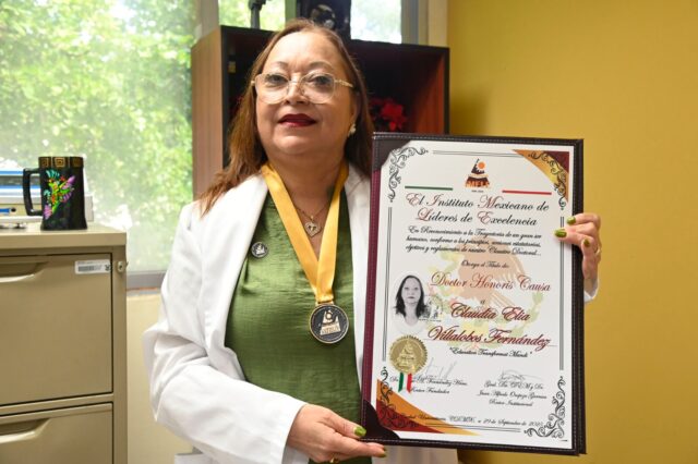 Por su trayectoria profesional y su desarrollo en la investigación a lo largo de más de treinta años, la universitaria Claudia Elia Villalobos Fernández, profesora investigadora de la Facultad de Biología de la Universidad Autónoma de Sinaloa (UAS), obtuvo la distinción Doctor Honoris Causa, título que le fue otorgado por el Instituto Mexicano de Líderes de Excelencia (IMELE).
