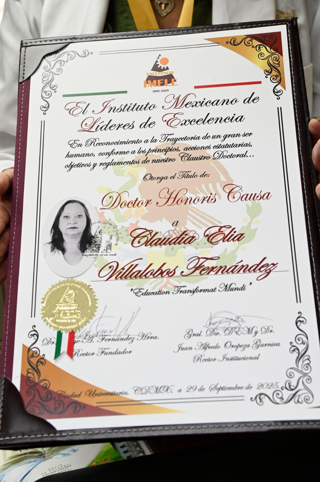 Con cargos importantes en distintas instituciones, Villalobos Fernández, aún incrédula de tal distinción del IMELE, institución que ha reconocido la trayectoria de más de 2 mil Doctores Honoris Causa, no solo en México sino en el mundo, compartió un breve segmento de su carrera.