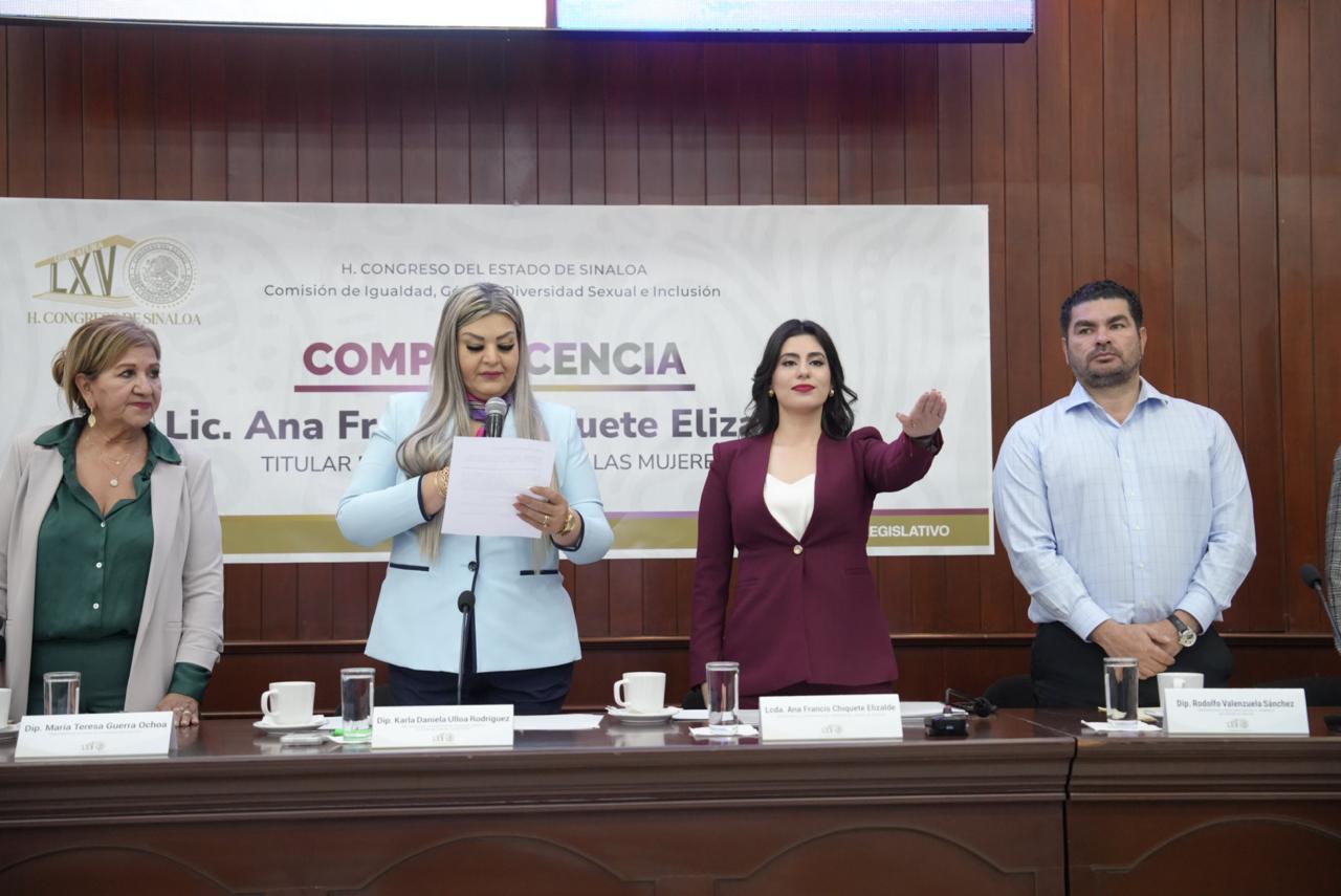 Como parte de la Glosa del Cuarto Informe de Gobierno del doctor Rubén Rocha Moya y en un ejercicio de diálogo democrático y rendición de cuentas, la Secretaria de las Mujeres, Ana Francis Chiquete Elizalde, compareció este lunes ante el Congreso del Estado, en cumplimiento a la agenda de comparecencias acordada por la Junta de Coordinación Política, donde presentó los resultados en materia de atención y protección a mujeres.