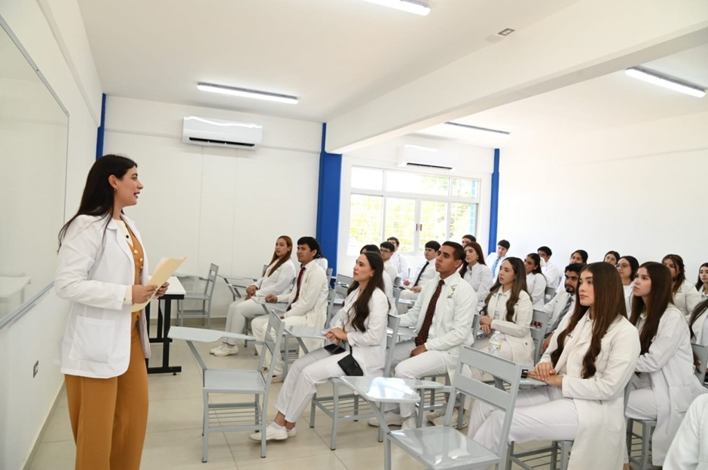 A nombre de los estudiantes de Medicina, la alumna Rosario Guadalupe Gámez Navarro agradeció al Gobernador por apostar por la educación y por escuchar siempre a la comunidad universitaria, demostrando con acciones que invertir en enseñanza es invertir en el futuro de Sinaloa. Asimismo, reconoció al Rector por su trabajo incansable para brindar mejores oportunidades a las nuevas generaciones.