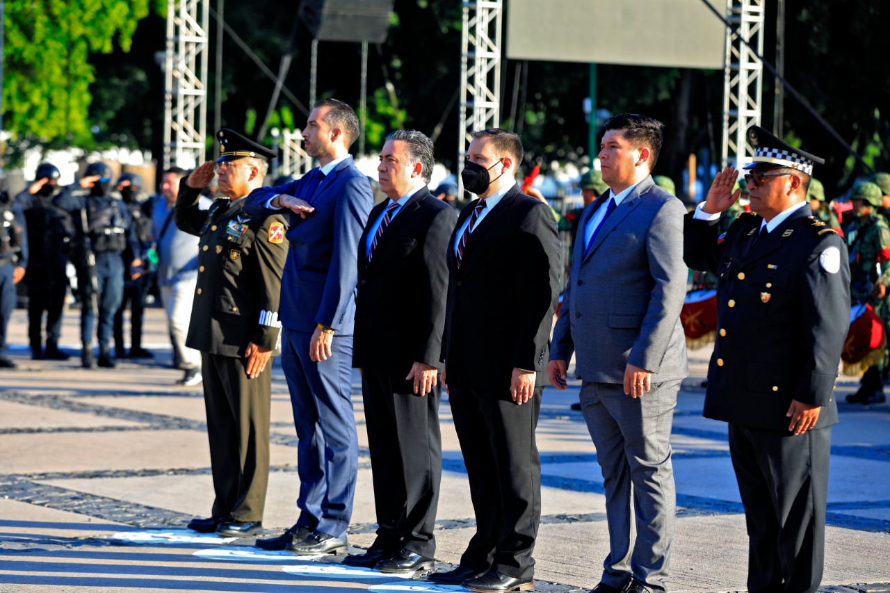 Autoridades civiles y militares conmemoraron el aniversario número 212 del Grito de Independencia con un izamiento de bandera a toda asta y con Honores de Ordenanza en la plaza cívica de Palacio de Gobierno.