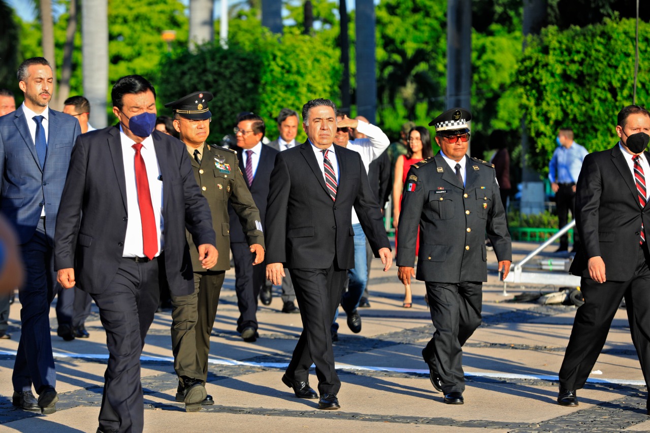 En representación del gobernador Rubén Rocha Moya, el secretario General de Gobierno, Enrique Inzunza Cázarez encabezó este evento acompañado del diputado Gene René Bojórquez Ruiz, presidente de la Mesa Directiva del H. Congreso del Estado, el magistrado Jesús Iván Chávez Rangel, presidente del Supremo Tribunal de Justicia, el secretario del H. Ayuntamiento, Leobardo Gallardo Beltrán y el Comisario Ramiro Ramírez López, Coordinador Estatal de la Guardia Nacional en la 9/a Zona Militar.