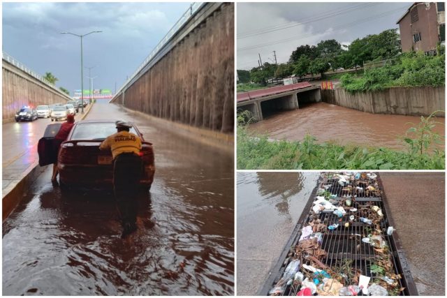 Entre los desbordamientos localizados, se detectó que en los drenes de Culiacancito y otro en Costa Rica se rebasaron los cauces pluviales a causa taponamientos humanos, ya que en el primero un particular construyó una barda en el desagüe del predio, motivando que se inundaran 5 viviendas aledañas; en tanto el segundo se debió a la acumulación de basura y residuos de índole agrícola.“Hemos tenido alrededor de 5 vehículos, quienes por no acatar las señalizaciones viales de prevención y zonas de riesgo de inundación, intentaron cruzar estas vialidades y terminaron varados, mojando su unidad y en algunos casos corriendo el peligro de ser arrastrados por la corriente, sin embargo no pasó a mayores”, detalló.