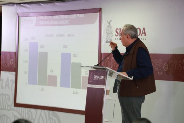 Con un comparativo que muestra una clara disminución en la incidencia de homicidios dolosos y feminicidios respecto de los primeros dos años de gobierno de los últimos dos sexenios, abrió este martes el Gobernador Rubén Rocha Moya su primera Conferencia Semanera del año, en la que mostrando cifras precisas de la Fiscalía General de Justicia del Estado, destacó el trabajo que se ha hecho durante su administración en materia de seguridad.