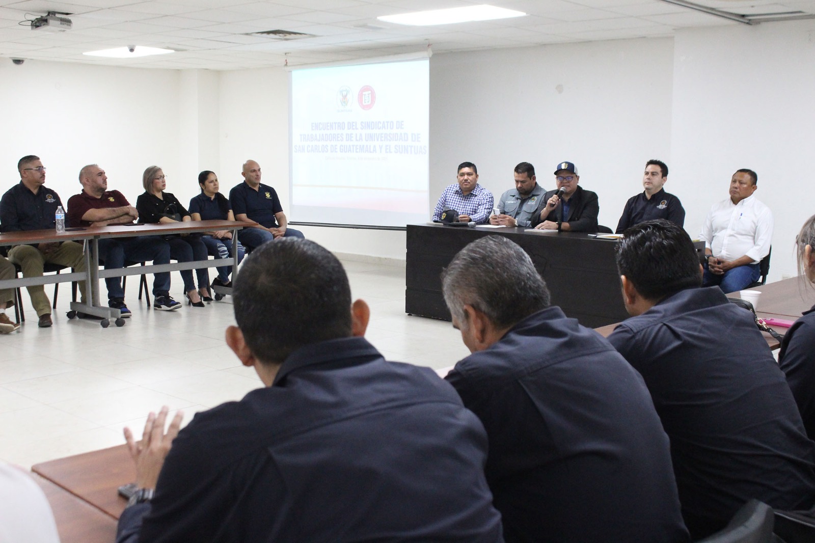 A su vez, el líder del SUNTUAS sección Administrativos e Intendencia, Isfa Leal Salazar dio la bienvenida a este encuentro a la delegación encabezada por Enrique Bremer, Secretario General del STUSC recordando la relevancia histórica y cultural de la Universidad de San Carlos de Guatemala, una de las más antiguas del continente y la que concentra la mayor población estudiantil del país.