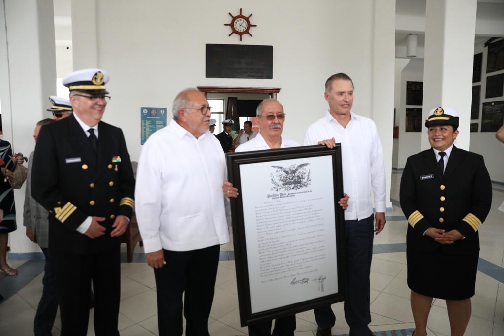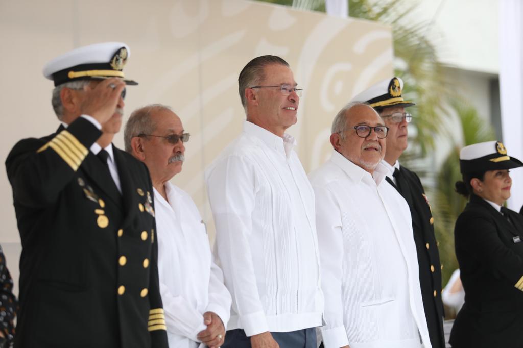 El anuncio lo hizo durante su visita a este puerto para acompañar al gobernador del estado a la ceremonia del 140 aniversario de la Escuela Náutica Mercante de Mazatlán “Capitán de Altura Luis Antonio Gómez Maqueo”, donde su director, Capitán de Altura, Juan Francisco Díaz Villa, les dio la bienvenida, junto con el presidente municipal, Luis Guillermo Benítez Torres.