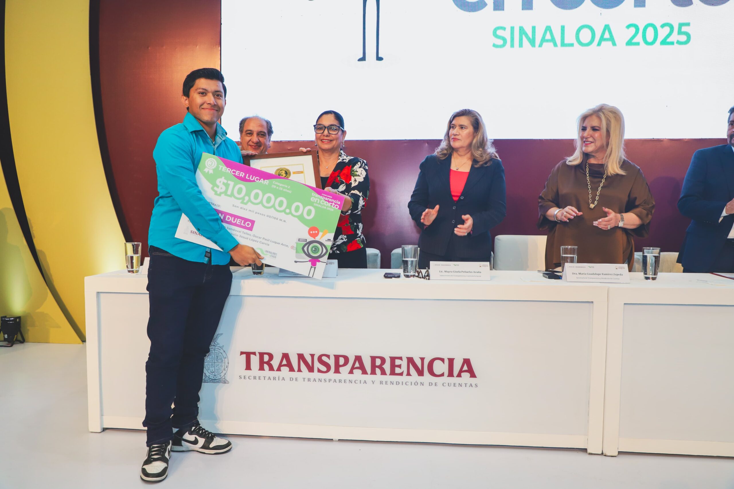Con el propósito de reconocer el esfuerzo ciudadano que vigila y evalúa la administración pública, además de fomentar la participación de los jóvenes que, a través de la filmación de cortometrajes, contribuye en la construcción de una sociedad honesta, íntegra y solidaria, el Gobierno del Estado entregó constancias e incentivos económicos a los ganadores del Premio de Contraloría Social y Concurso Transparencia en Corto, Sinaloa 2025.