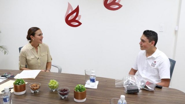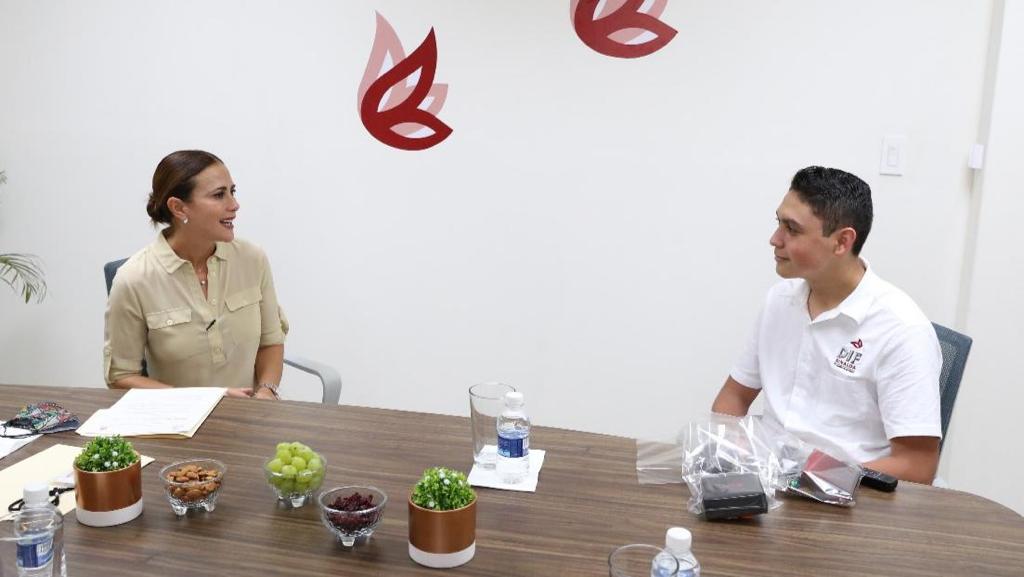 La presidenta de DIF Sinaloa, Rosy Fuentes de Ordaz, sostuvo un encuentro con el joven Enrique Ángel, en donde lo felicitó por su nominación a un premio tan importante a nivel mundial.