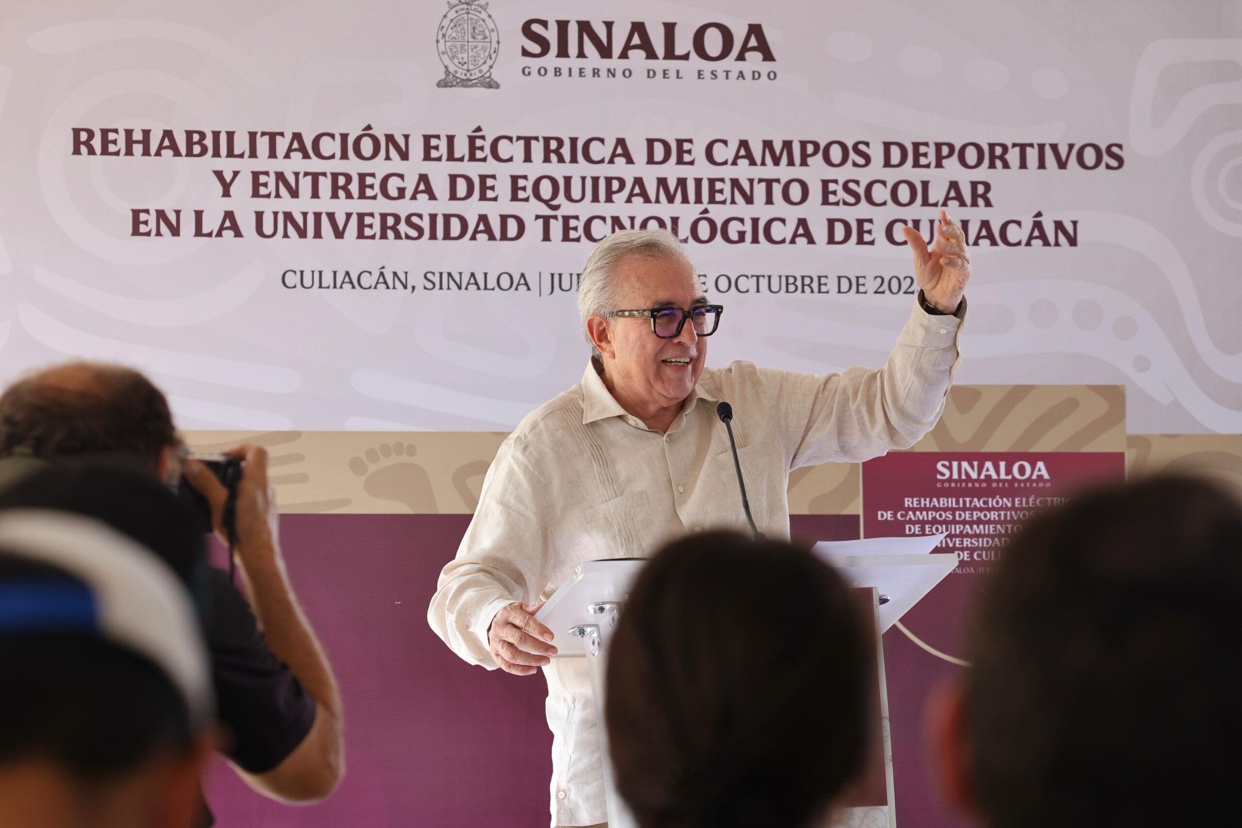 El mandatario estatal arribó a la UTC, ubicada al interior de la Ciudad Educadora y Sustentable del Saber, donde fue recibido por su rectora, Ana Lucía Escobar Chávez, en su carácter de anfitriona, además por la secretaria de Educación Pública y Cultura, Gloria Himelda Félix Niebla; por el subsecretario de Educación Media Superior y Superior, Rodrigo López Zavala; y el director del ISIFE, Hugo Echave Meneses.