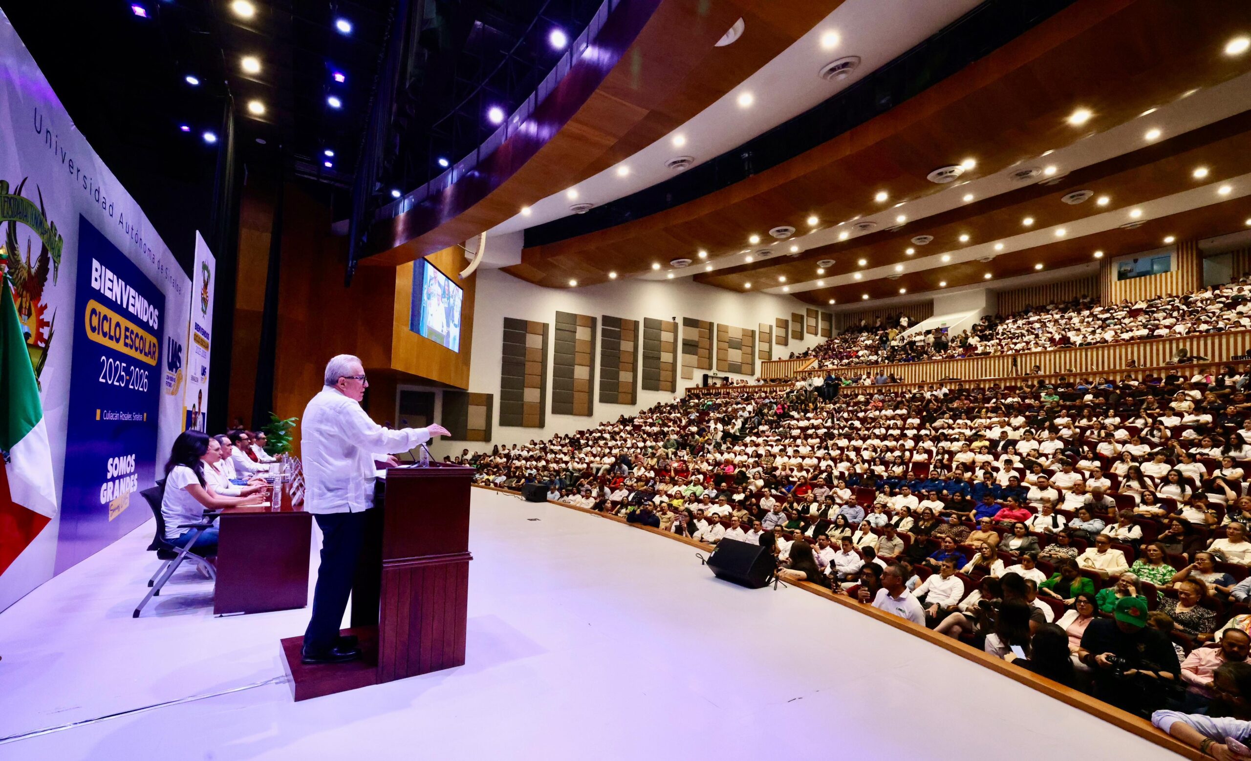 Desde el Auditorio de la Autonomía Universitaria del Campus Buelna, el mandatario estatal puso en marcha el ciclo escolar 2025-2026 de la máxima casa de estudios