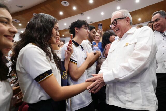 “Expreso nuestro agradecimiento al gobernador del estado, el doctor Rubén Rocha Moya, con quien se ha consolidado una relación de trabajo coordinado, pensando siempre en lo mejor para los estudiantes y para la sociedad sinaloense. Ese esfuerzo conjunto nos inspira a comprometernos porque si la Universidad ha evolucionado durante siglo y medio es porque cada generación ha hecho la parte que le corresponde y a nosotros ahora nos toca hacer la nuestra”, dijo.