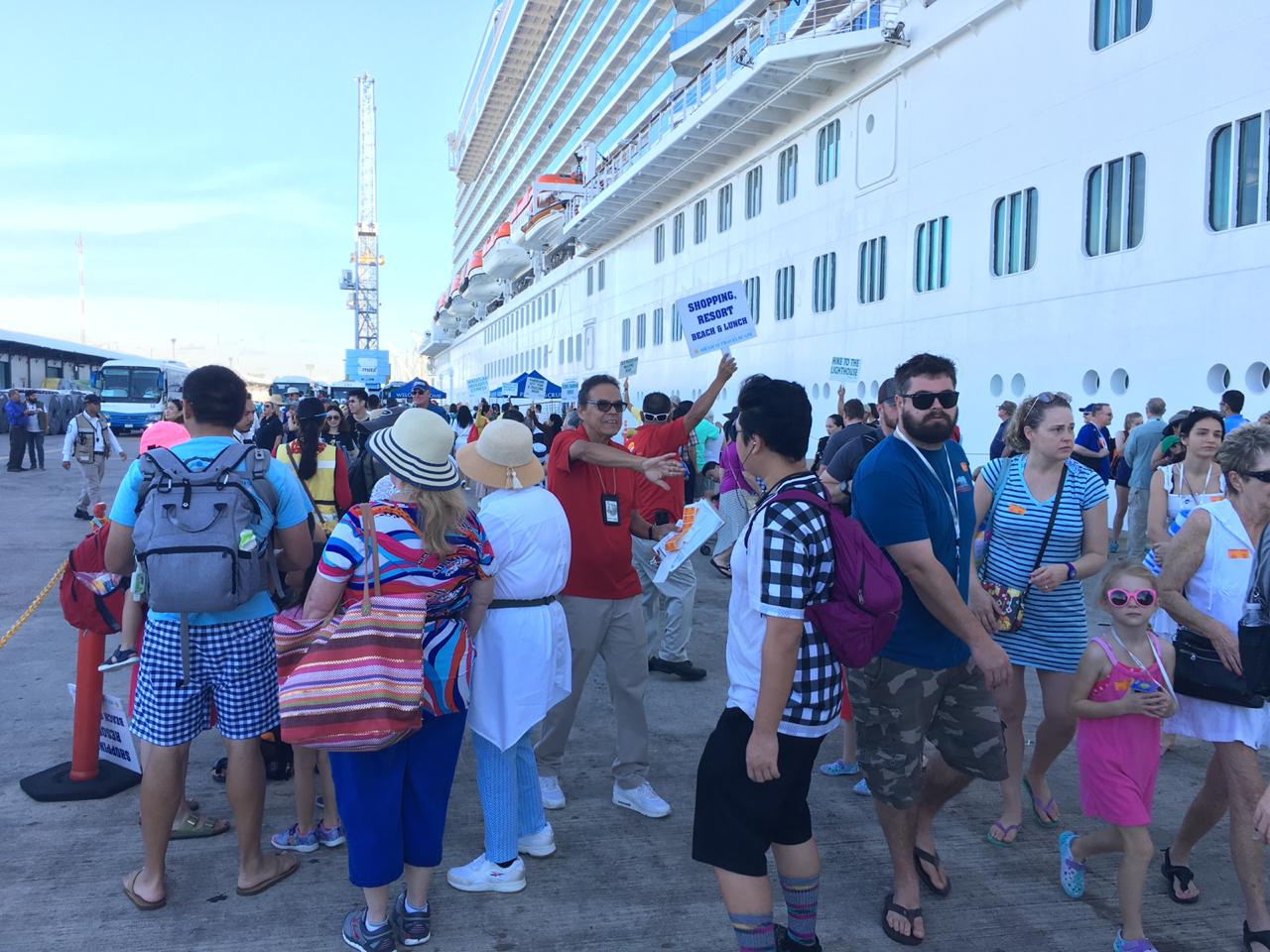 El tercero fue el Royal Princess, que llegó a las 08:00 horas, también de Cabo San Lucas, con 3,971 pasajeros y 1,360 tripulantes. Continuará su marcha a las 6 de la tarde.