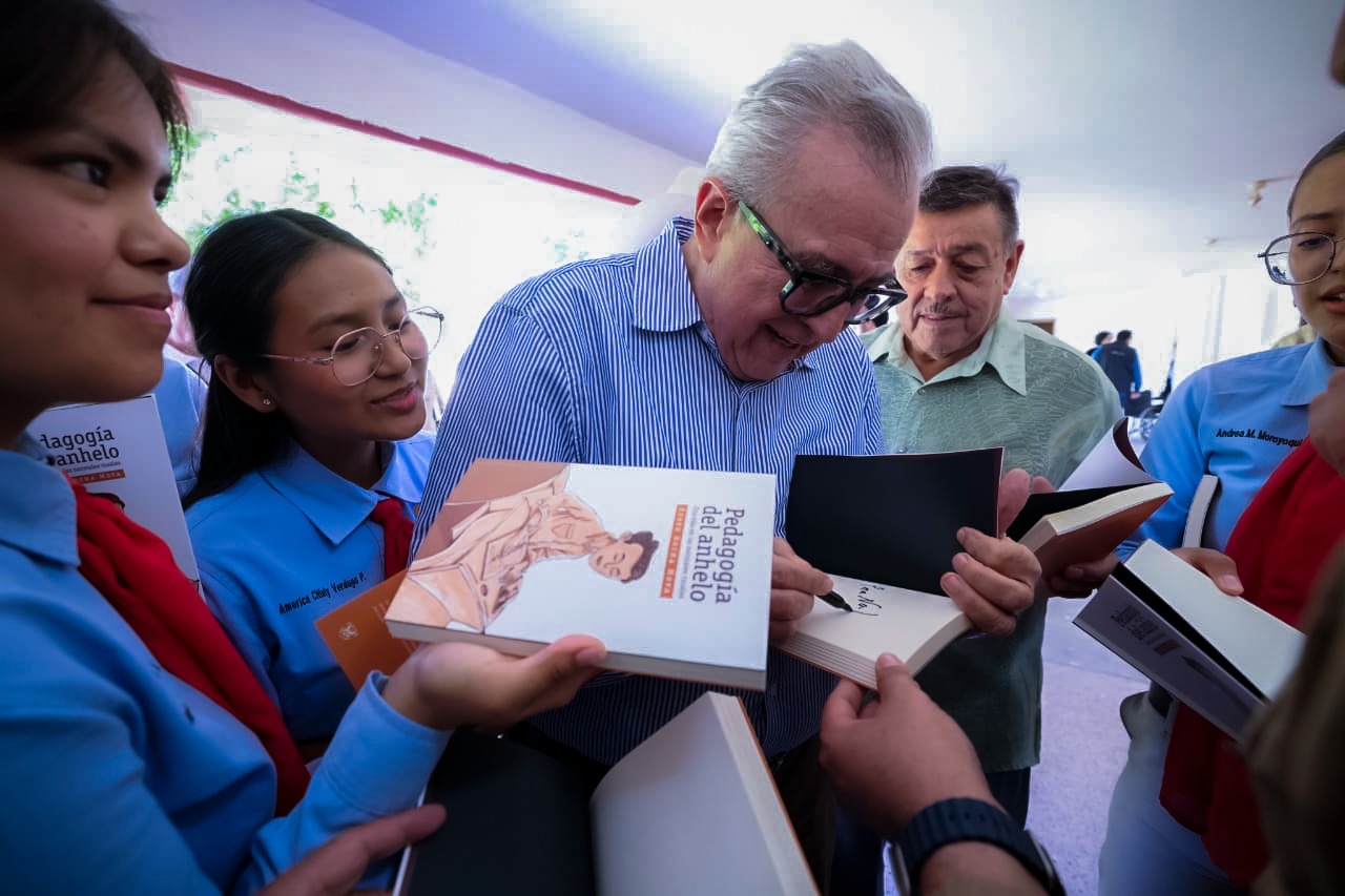 Fortaleciendo lazos y convivencia generacional con las y los maestros egresados de las escuelas normales de todo el país, para compartir aportaciones y experiencias a través del diálogo y la reflexión, como ex alumno normalista rural, el Dr. Rubén Rocha Moya, asistió como invitado de honor, al V Encuentro Nacional de Egresados y Egresadas de Escuelas Normales Rurales, realizado en su Alma Máter en El Quinto, Etchojoa, Sonora, donde presentó su libro “Pedagogía del Anhelo. Una Vida en las Normales Rurales”.