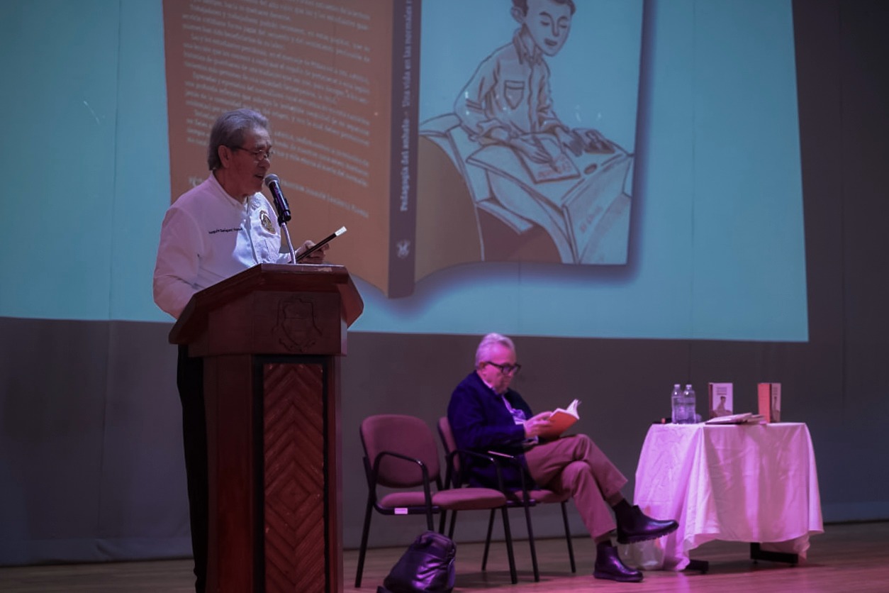 “El libro este habla de todas las normales, de todas, aquí está algún detalle me refiero a ellas, porque las conocí. Pero, por supuesto, yo relato la vida en las normales rurales en mi experiencia en El Quinto, porque aquí estuve seis años”, comentó el Dr. Rocha Moya, subrayando que su publicación puede ser de utilidad para complementar una investigación.