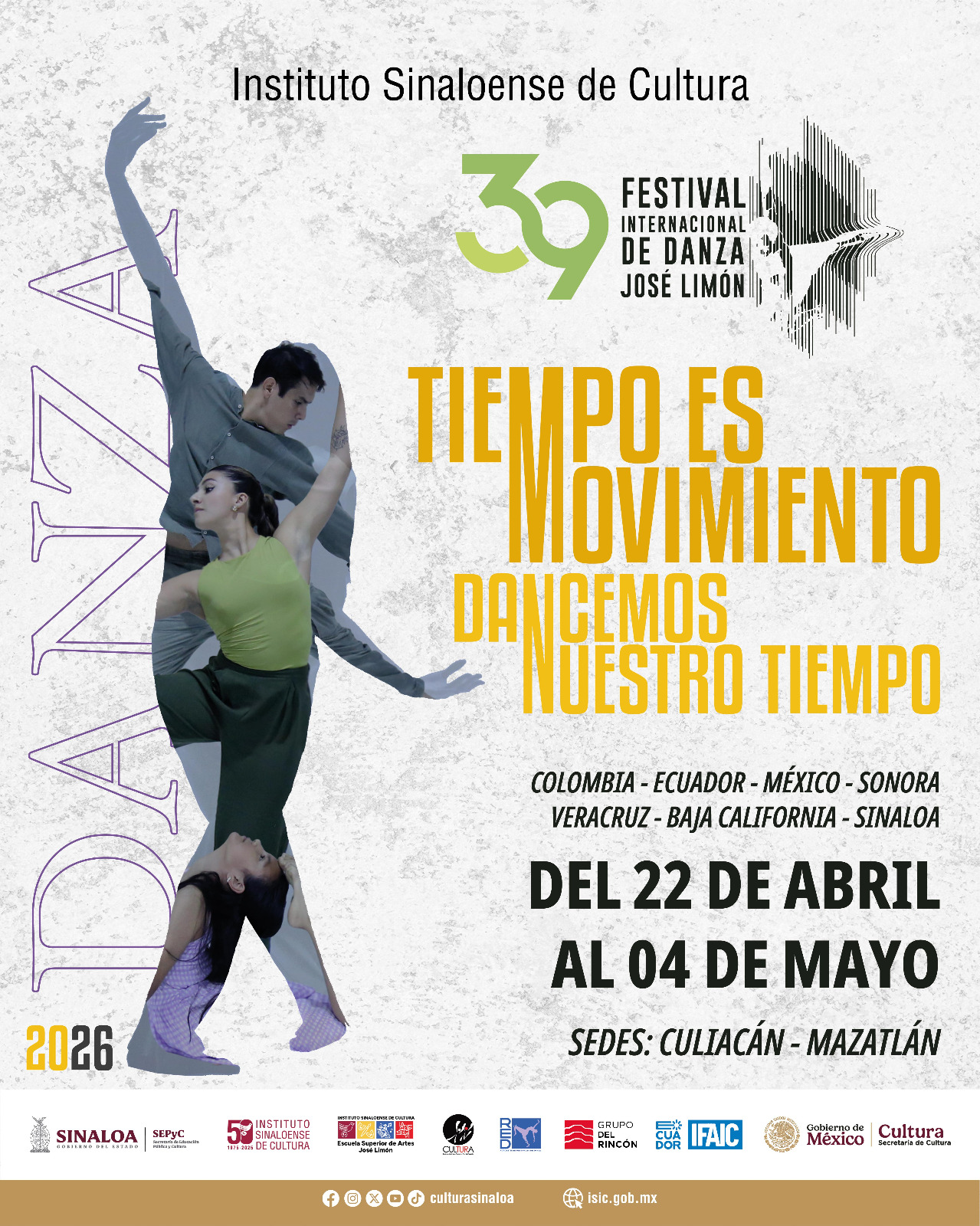 El Instituto Sinaloense de Cultura presentó en conferencia de prensa la programación del 39° Festival Internacional de Danza Contemporánea José Limón 2026, “Tiempo es movimiento, dancemos nuestro tiempo”, que se llevará a cabo del 22 de abril al 4 de mayo en Culiacán y Mazatlán, consolidándose como una de las plataformas más longevas del país para la difusión y proyección de la danza contemporánea.