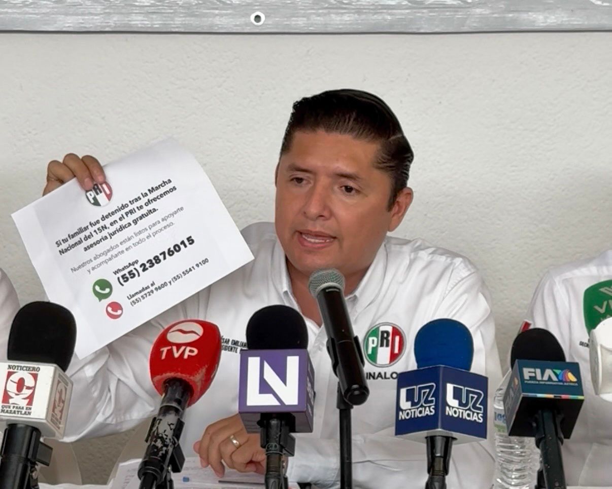 El PRI Sinaloa anunció asesoría jurídica gratuita para familiares de detenidos y denunció un “andamiaje político” del gobierno federal para justificar la represión, con comunicados oficiales que —según el partido— omiten los abusos contra jóvenes.