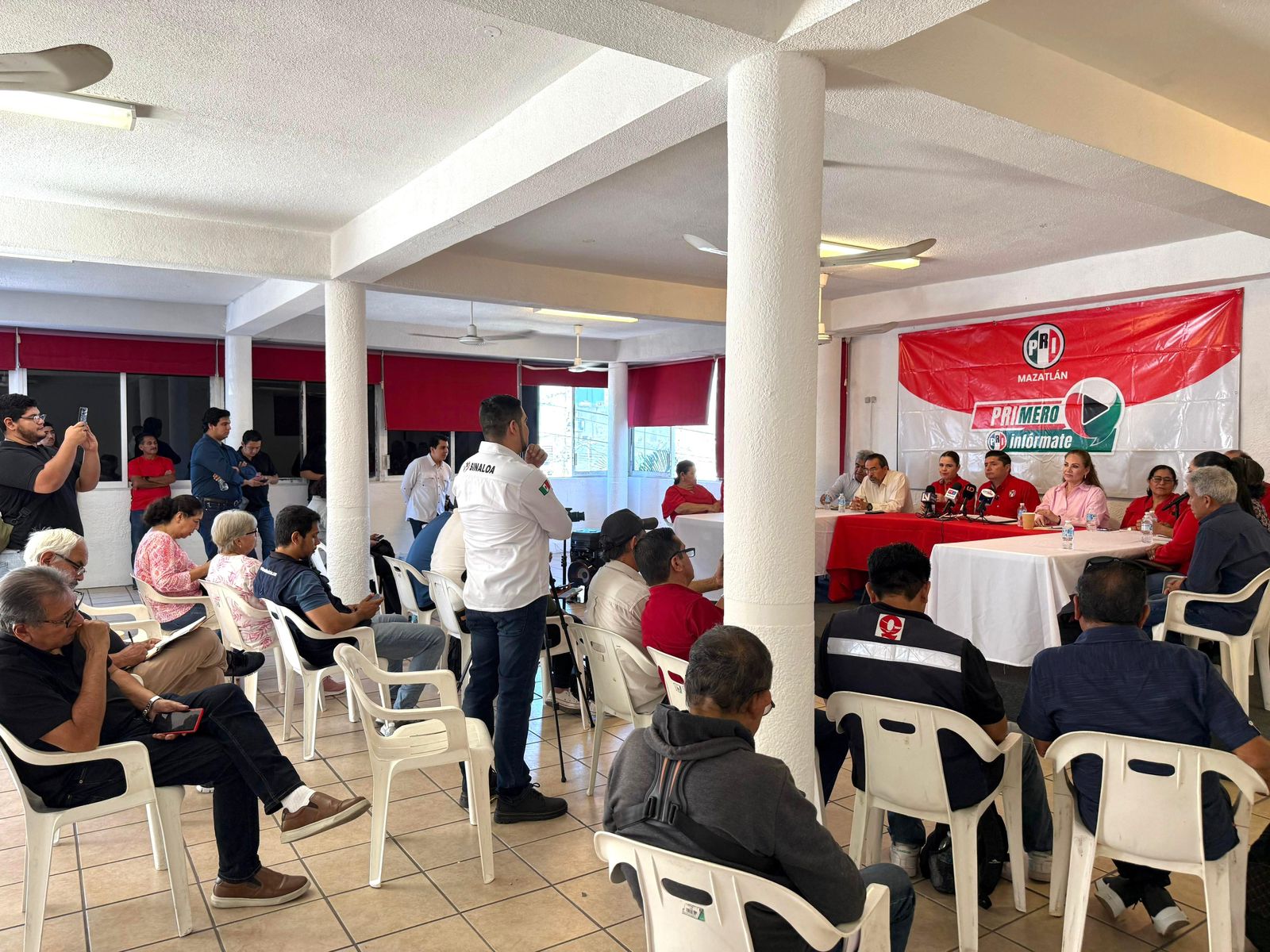 En dicha conferencia de prensa, estuvieron presentes el secretario general del PRI Mazatlán, José Trinidad Tirado Olvera; presidenta del PRI de El Rosario, María del Carmen León; secretario general del PRI en El Rosario, Manuel Alfonso Quintero Peraza; delegada del PRI en El Rosario, Jeanna Torres Rentería; secretaria de Gestión Social, Sonia Lorena Cruz Solís; dirigente del IRH municipal, Octavio Murillo Betancourt; entre otras personalidades.