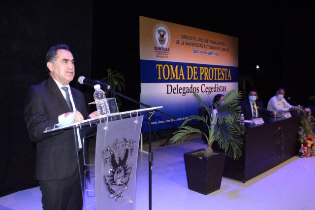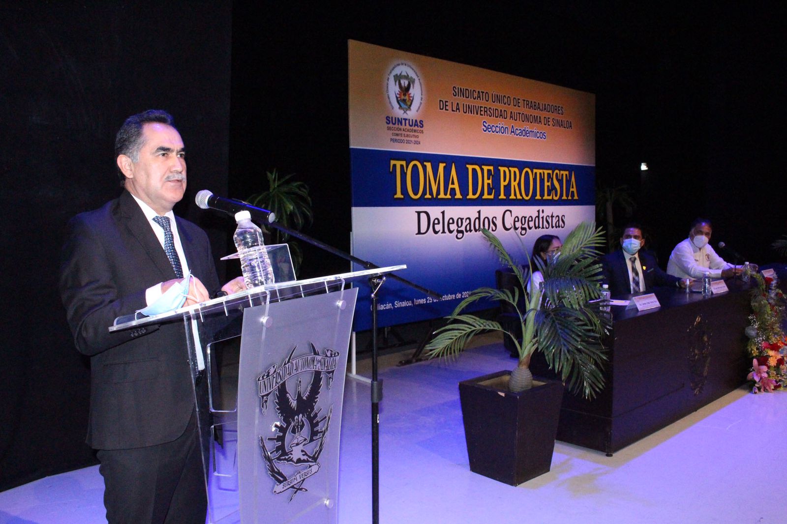 Respetar el Contrato Colectivo de Trabajo y siempre proteger, defender y priorizar el salario de los universitarios, reiteró el Rector de la Universidad Autónoma de Sinaloa (UAS), doctor Jesús Madueña Molina, al asistir como invitado de honor a la Toma de Protesta de los Delegados Cegedistas del SUNTUAS, Sección Académicos.