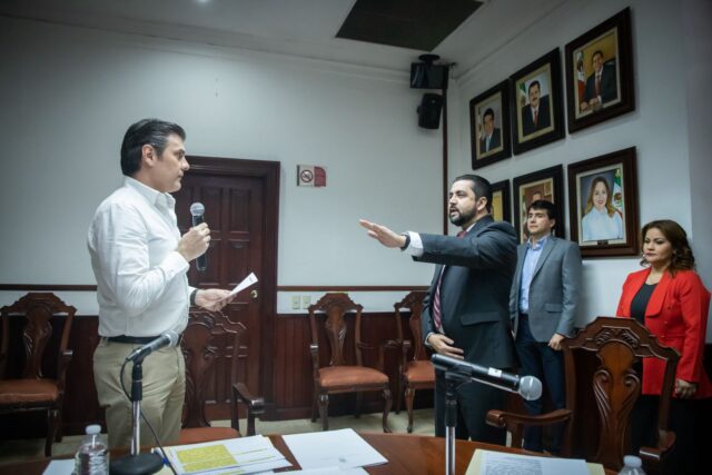 Luego de someter a votación la propuesta de designación, misma que fue aprobada por unanimidad por el pleno de Cabildo, el alcalde José Ernesto Peñuelas Castellanos procedió a realizar la toma de protesta conforme a lo dispuesto en el artículo 144 de la Constitución Política del Estado de Sinaloa.