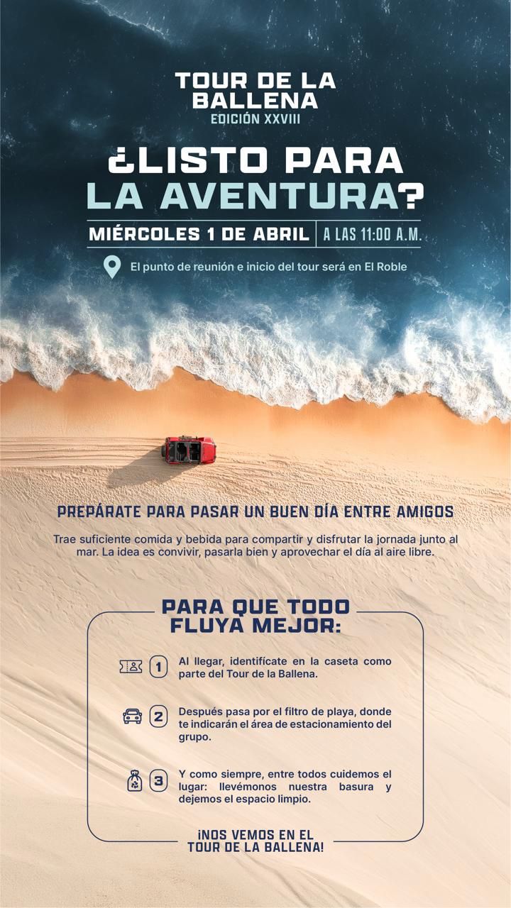 • Tour de la Ballena, el día miércoles 1 de abril, con una ruta recreativa para vehículos todoterreno en la zona de dunas.