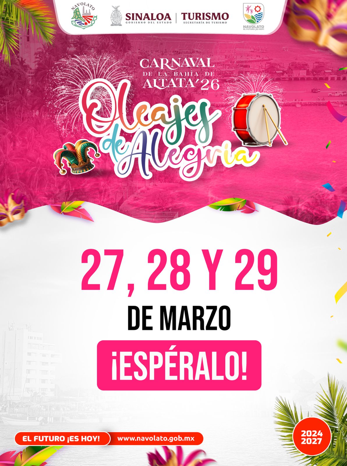 • El Carnaval de la Bahía de Altata 2026 “Oleajes de alegría”, los días viernes 27, sábado 28 y domingo 29 de marzo, con diversas actividades y conciertos musicales.