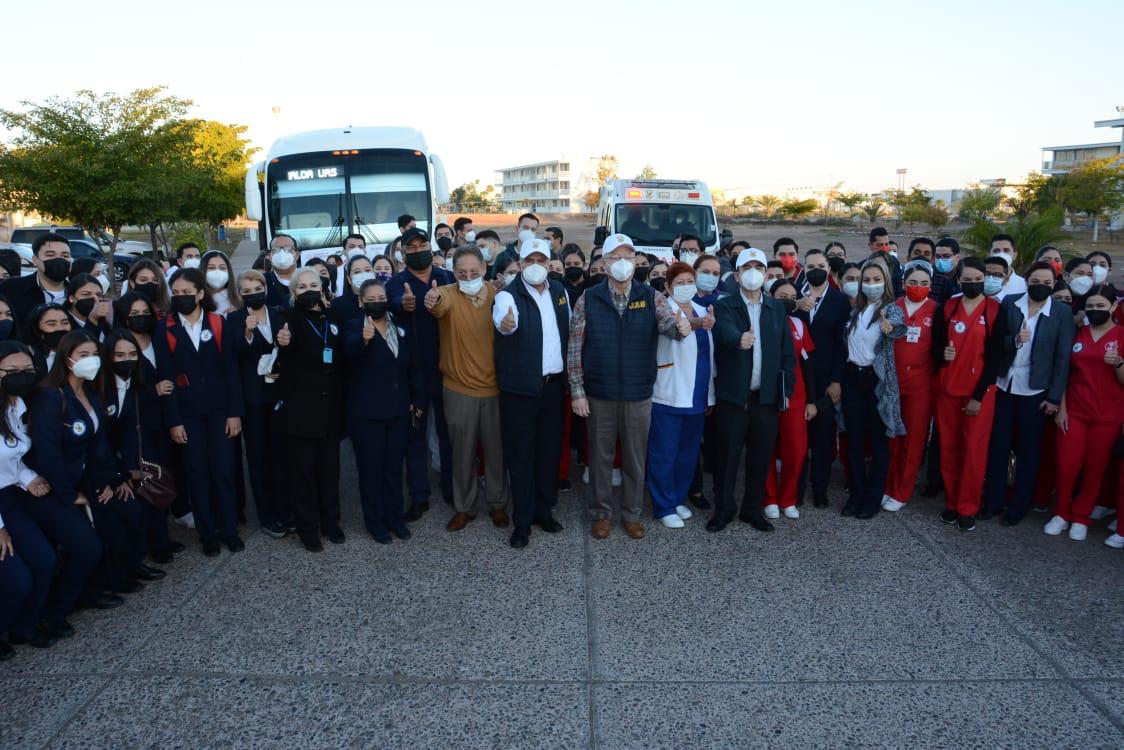 “Estamos despidiéndolos de una forma simbólica mostrándoles el agradecimiento del servicio que están dando nuestros estudiantes de las diferentes áreas, hoy llevan una esperanza al aplicar la primera dosis (…) esto marca una responsabilidad y un compromiso social muy importante, así que la UAS en movimiento, sus docentes, sus alumnos de manera voluntaria como brigadistas, nuestras instalaciones, nuestros ultracongeladores que han recepcionado más de 100 mil dosis y que hemos enviado no solo aquí a Sinaloa, sino a otros estados”, expresó Guerra Liera.
