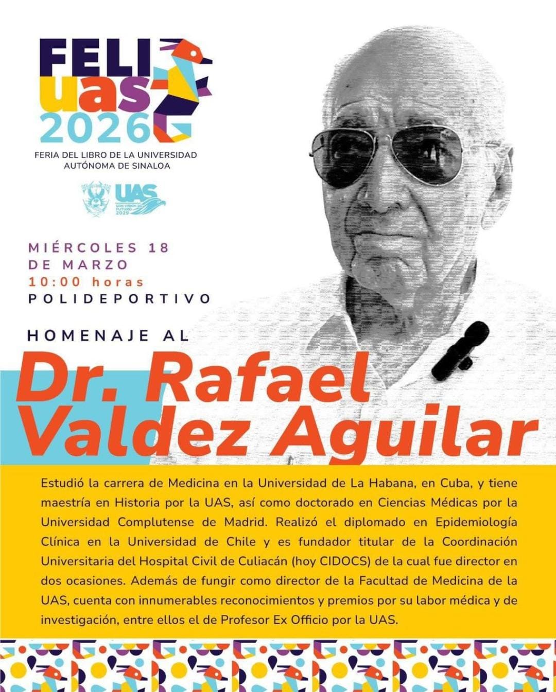El programa de la FeliUAS 2026 contempla más de 150 actividades, incluyendo el homenaje al Dr. Rafael Valdez. Además, se implementará la iniciativa “La FELIUAS en tu Escuela”, extendiendo presentaciones y talleres a las preparatorias Antonio Rosales, Mazatlán y Rubén Jaramillo, así como a las facultades de Derecho y Ciencias Sociales.